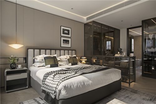 樓盤精研戶型的匠心, 體現(xiàn)在對(duì)于居者全方位需求的體察。從細(xì)節(jié)入手,家的精致得以實(shí)現(xiàn)。 主臥空間充滿現(xiàn)代的設(shè)計(jì)美感,注重整體細(xì)節(jié),使每一寸空間都得以利用。