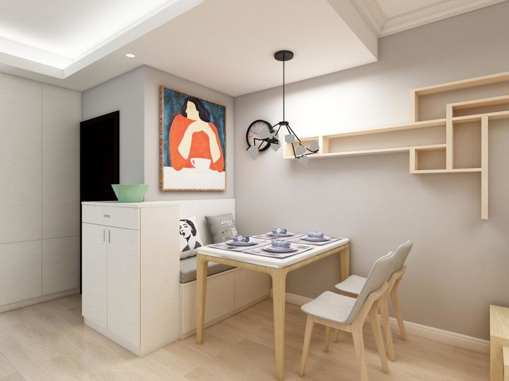 從家具上來說,日式家具相對(duì)低矮,不論沙發(fā)或是床,因?yàn)榈椭匦牡募揖邥?huì)讓空間顯得通透開闊,這也是為什么小戶型會(huì)推薦日式風(fēng),而北歐風(fēng)家具相對(duì)高挑。從色彩上來說,日式風(fēng)的配色比較柔和,以淺色系為主,而北歐風(fēng)的配色飽會(huì)比較高,會(huì)有十分亮眼的顏色,所以日式風(fēng)和北歐風(fēng)還是有很大的差別的。 原木地板,白色墻面,干凈,簡潔,木格增加了線條感,讓空間得到舒緩,使得原有的空間更加精致。餐桌上簡約實(shí)用的餐具,背景墻上是色彩明亮的抽象人物裝飾畫,布置在這個(gè)簡約風(fēng)的空間下,顯得格外的自然舒適而優(yōu)雅大氣。 在傳統(tǒng)和室中,日本人會(huì)在榻榻米上席地而坐,這種文化同樣也保留至今。榻榻米很適合用于次臥,作為小戶型的多功能空間,榻榻米可是兼具儲(chǔ)物、客臥、茶室、娛樂各種功能于一身,簡簡單單又溫暖柔軟。 3、北歐風(fēng)