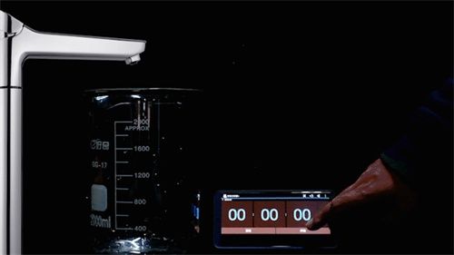 ??加熱超快 按需又節(jié)能 ??整機(jī)內(nèi)置了一個(gè)2L的304不銹鋼的真空內(nèi)膽,水凈化后進(jìn)入熱罐內(nèi)存儲(chǔ)、燒開、保溫,用水時(shí)通過龍頭上的熱水按鍵取用。燒水是需要時(shí)間的,那這款產(chǎn)品在實(shí)際使用中又需要多長(zhǎng)時(shí)間燒開一膽水呢?我們來測(cè)試重新補(bǔ)滿一膽水到燒開所需的時(shí)間。