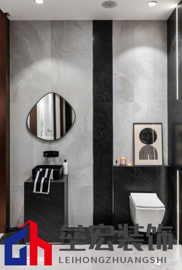 典雅的大理石與木紋磚相搭配,賦予衛(wèi)浴空間格調(diào)和精致感,再配上光亮的裝飾和精致的衛(wèi)浴潔具,使空間更具美感。
