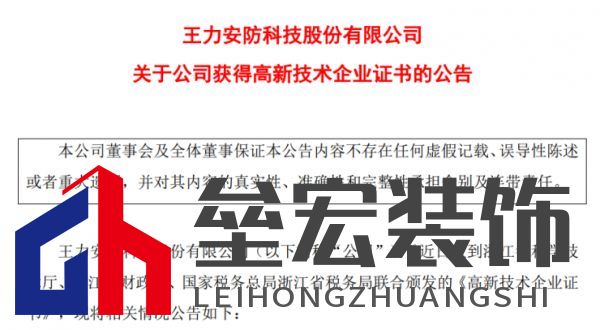 | 高新技術(shù)企業(yè)是在國家重點(diǎn)支持的高新技術(shù)領(lǐng)域內(nèi),持續(xù)進(jìn)行研究開發(fā)與技術(shù)成果轉(zhuǎn)化,形成企業(yè)核心自主知識(shí)產(chǎn)權(quán),并以此為基礎(chǔ)開展生產(chǎn)經(jīng)營活動(dòng)的企業(yè)的認(rèn)定。獲得高新技術(shù)企業(yè)認(rèn)定是對(duì)一個(gè)企業(yè)科技成果和研發(fā)、創(chuàng)新能力的一種肯定,更將獲得國家的大力扶持,得到撥款、減稅、低息貸款等一系列的政策傾斜,對(duì)于上市企業(yè)來說絕對(duì)是一個(gè)重大利好。 2022年伊始,在家居圈便有5家上市相機(jī)發(fā)出公告,公布獲得其母公司或全資子公司獲得高新技術(shù)企業(yè)認(rèn)定。 一、王力安防: 2月11日,王力安防發(fā)布《關(guān)于公司獲得高新技術(shù)企業(yè)證書的公告》。