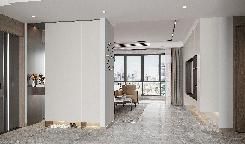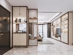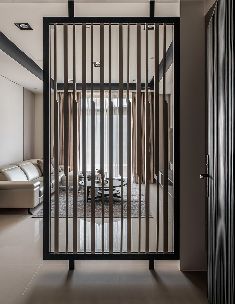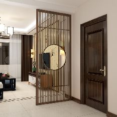 2.進(jìn)門見餐廳 如果進(jìn)門是餐廳的話,可以將玄關(guān)柜和餐邊柜設(shè)計(jì)為一體式組合柜,L型設(shè)計(jì)既化解了轉(zhuǎn)角墻體的尷尬,也充分利用了空間,解決了進(jìn)門空間的收納難題,組合式柜體風(fēng)格統(tǒng)一,還增強(qiáng)了美觀性。定時(shí)餐邊柜時(shí),柜體中部最好挖空,可以用來當(dāng)水吧,放置水杯、水壺等雜物。 二、隔斷 進(jìn)門見廳總是有“一覽無余”的尷尬,主人的隱私也得不到保障,即使戶型沒有自帶玄關(guān),很多人也會(huì)利用各種方式進(jìn)行隔斷。 1.普通隔斷 普通隔斷性價(jià)比高,安裝也很方便,基本上不會(huì)受戶型影響,是很多家庭的第一選擇。普通隔斷一般分為木質(zhì)隔斷、鐵藝隔斷和玻璃隔斷,可以根據(jù)不同的家裝風(fēng)格選擇不同材質(zhì)的隔斷,美觀大氣,也不會(huì)影響室內(nèi)采光。