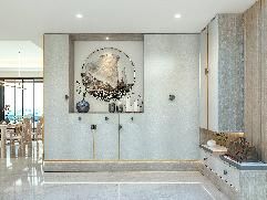 成品柜隔斷(全友126311玄關(guān)柜) 3.組合式隔斷 有的家庭有也會(huì)將普通隔斷和柜體隔斷組合式設(shè)計(jì),不僅增加入戶空間功能,讓進(jìn)門見廳的空間層次更豐富,也更顯個(gè)性。