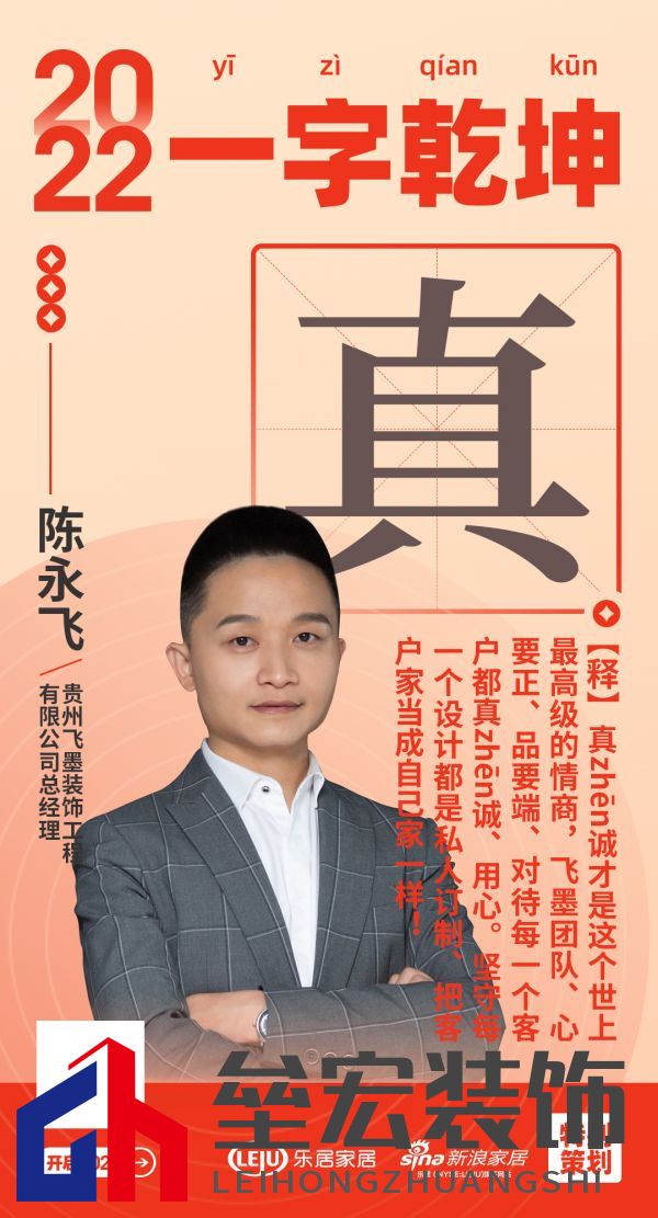 在“2022一字乾坤”活動(dòng)中,貴州瑞美世家家居有限公司總經(jīng)理薛春斌用「?!贡磉_(dá)了2022年的規(guī)劃和目標(biāo): 真誠才是這個(gè)世上高級(jí)的情商,飛墨團(tuán)隊(duì)、心要正、品要端、對(duì)待每一個(gè)客戶都真誠、用心。堅(jiān)守每一個(gè)設(shè)計(jì)都是私人訂制、把客戶家當(dāng)成自己家一樣! |