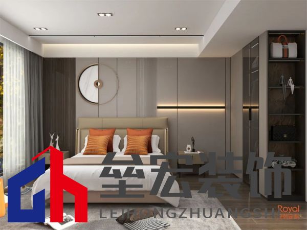 ??近年來的空間設計,人們都習慣性地加入隱藏式燈帶,為暗沉的色調(diào)增光添色,在本個主臥空間中,設計師在背景墻上采用這一設計手法,在灰色背景的襯托下,視覺效果顯得十分得體!