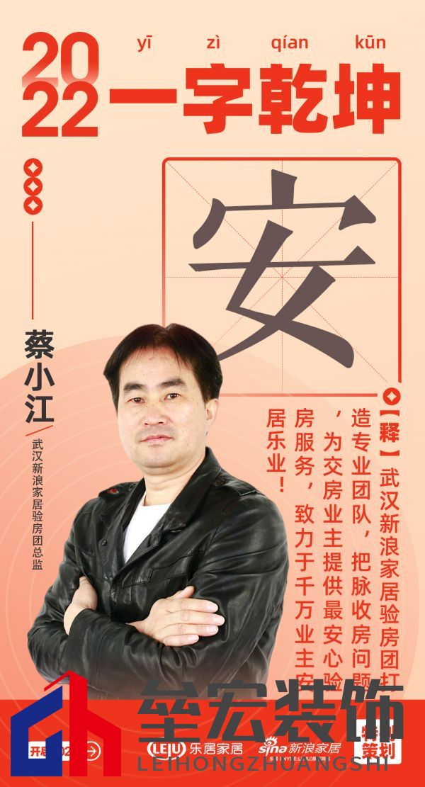 “樂業(yè)安居”是中國(guó)人最為共情之處,湖北家居人深諳漢字對(duì)于國(guó)人、對(duì)于企業(yè)的非凡意義,武漢新浪家居戰(zhàn)略合作伙伴、家居行業(yè)優(yōu)秀代表: 武漢新浪家居驗(yàn)房團(tuán)總監(jiān)蔡小江,以「安」字打開新年儀式感。 武漢新浪家居驗(yàn)房團(tuán)打造專業(yè)團(tuán)隊(duì),把脈收房問題,為交房業(yè)主提供最安心驗(yàn)房服務(wù),致力于千萬業(yè)主安居樂業(yè)?!赴病棺滞昝辣磉_(dá)了2022年武漢建博會(huì)的愿景。 虎歲賁華,說好中國(guó)字,鏈接美好生活! |