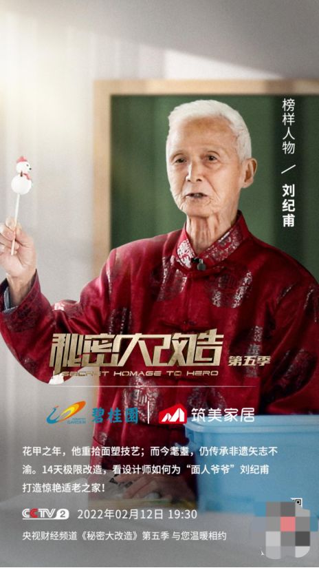 ??如今已是耄耋之年的劉紀(jì)甫老人,依舊為傳承面塑非遺忙碌奔波著。本期《秘密大改造》邀請(qǐng)到d尖設(shè)計(jì)師覃思,攜手碧桂園集團(tuán)旗下筑美家居,為這位86歲的非遺傳承人改善居住環(huán)境。