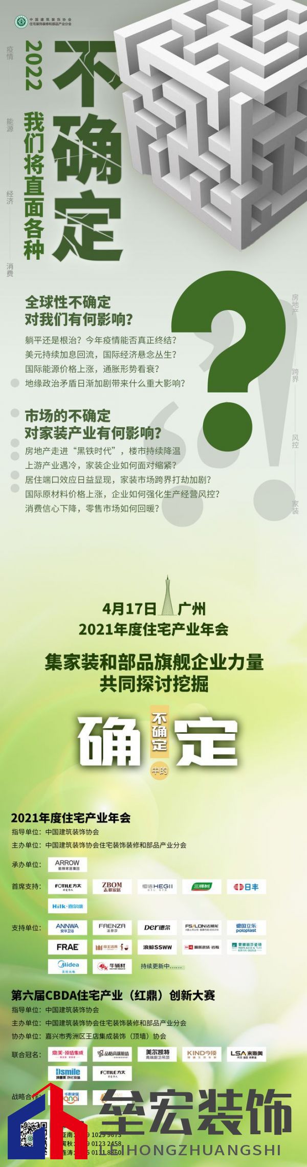 據(jù)68家A股建筑裝飾企業(yè)2021年業(yè)績預(yù)告,32家歸母凈利潤虧損,占比約47%。地產(chǎn)至暗,公裝普虧,家裝成了產(chǎn)業(yè)新風(fēng)口。2021年,家裝賽道大鱷紛紛入局資本密集涌入,行業(yè)生態(tài)面臨重構(gòu)。 資源端:大廠入局資本涌入—傳統(tǒng)裝企能否守好自己的一畝三分地? 公裝企業(yè)與房地產(chǎn)牽連至深,2021年度歸屬于上市公司股東的凈利潤均為負(fù)值,紛紛向房企提起訴訟、建材企業(yè)密集追債,在這種局勢下,家裝渠道關(guān)注度顯著提升,地產(chǎn)、物業(yè)、互聯(lián)網(wǎng)紛紛并道家裝,面對更多的跨界打劫,傳統(tǒng)裝企能把住多少基本盤? 2021混戰(zhàn)已去,2022局勢依舊迷離。 帶著這些“不確定”標(biāo)簽,我們邁入了2022年。 在這一年里,我們要面對延宕至第三個年頭的新冠疫情,面對西方國家取消全面防疫措施徹底躺平的風(fēng)險難控; 在這一年里,我們還要面對國內(nèi)經(jīng)濟需求收縮、供給沖擊、預(yù)期轉(zhuǎn)弱三重壓力,面對宏觀經(jīng)濟和微觀市場諸多不確定。 當(dāng)中國發(fā)展從數(shù)量時代進入到質(zhì)量時代,什么樣的產(chǎn)品可以撐得起品質(zhì)家裝? 當(dāng)增量市場風(fēng)光不再,家裝的第二增長曲線在哪個坐標(biāo)系中? 當(dāng)各部委連續(xù)出臺8個文件@家裝圈,圈里人做好承接準(zhǔn)備了嗎? 當(dāng)家裝已經(jīng)成為家庭大宗消費代表,如何滿足家裝需求?落地生活方式? 4月17日(視疫情情況)廣州,2021年度住宅產(chǎn)業(yè)年會, 此次會議,將首發(fā)《2021年度中國家裝消費行為研究報告——“整裝”出發(fā)》,也將第首次發(fā)布《中國家裝設(shè)計趨勢》; 此次會議,年會首次牽手紅鼎創(chuàng)新大賽,13家家裝企標(biāo)“領(lǐng)跑者”企業(yè)、33家信用評價星級企業(yè)、72個室內(nèi)設(shè)計TOP作品、57個部品工業(yè)設(shè)計TOP作品迎來高光時刻; 此次會議,家裝和部品旗艦企業(yè)將共同在復(fù)雜局勢中合力尋找杠桿解,探討挖掘“不確定”中的“確定”。