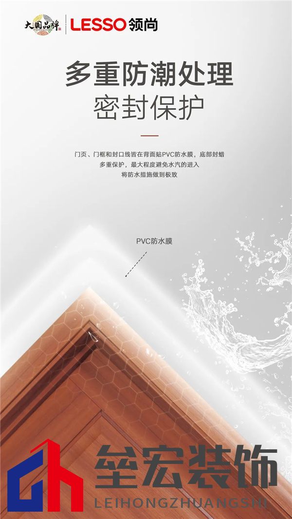 ??背面防護(hù)很重要 ??在挑選的時(shí)候一定要對(duì)背面細(xì)節(jié)關(guān)注,防止靠墻面以及當(dāng)空氣中的水汽凝結(jié)成水珠在木門上滑落時(shí)的濕氣入侵(想想自己每次洗澡后的木門)。領(lǐng)尚木門門頁、門框和封口線,皆在背面貼PVC防水膜,有效防止空氣中的水分侵入板材內(nèi)部,讓防潮效果更進(jìn)一步。