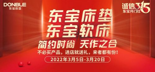 315國(guó)際消費(fèi)者權(quán)益日來(lái)臨之際,東寶床墊推出了系列活動(dòng),對(duì)家裝寢具有需求的朋友不妨去瞧一瞧。 |