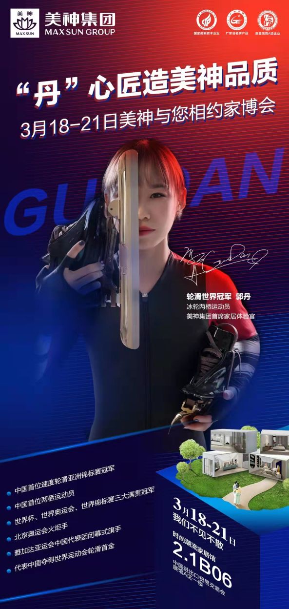讓健康守護(hù)每一個(gè)溫馨的家,讓品質(zhì)護(hù)航每一位所愛(ài)之人,冠軍衛(wèi)冕品質(zhì)家居,美神,自然之美,健康之神,冠軍之選,成就非凡品質(zhì)之家! 3月18-21日 美神攜手世界冠軍郭丹 與您相約廣州國(guó)際家居博覽會(huì) 更多驚喜,盡在現(xiàn)場(chǎng)! 更多品質(zhì)家居產(chǎn)品 | 歡迎蒞臨美神家居體驗(yàn)館 預(yù)約電話:800-830-8702