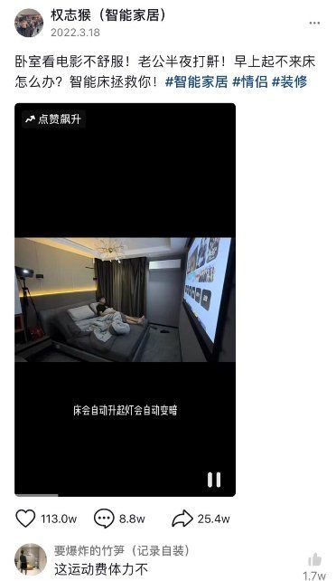 | 近日一款來(lái)自趣睡科技的智能電動(dòng)床火爆某短視頻平臺(tái),發(fā)布幾天時(shí)間點(diǎn)贊量已上百萬(wàn),評(píng)論量也近十萬(wàn)。