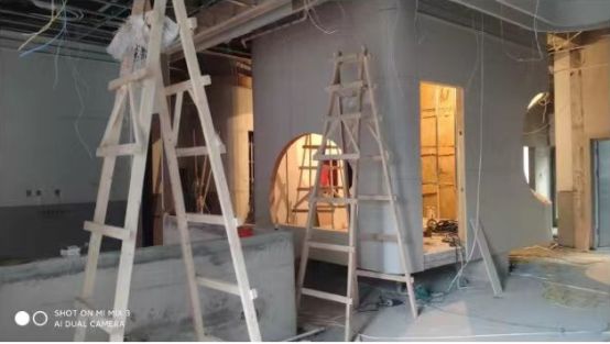 施工前(左)與施工后(右) 我們遵照兒童的心理,從兒童的視角出發(fā),設(shè)計(jì)了這間兒童診室。外墻白色潔凈,并且采用了圓角設(shè)計(jì)保護(hù)兒童。彩色的不規(guī)則圓形窗,充滿(mǎn)了夢(mèng)幻的氛圍,與診室內(nèi)的冷色燈光形成鮮明對(duì)比,營(yíng)造出一種太空艙的感覺(jué)。 下方采用了懸空的設(shè)計(jì),增強(qiáng)診室整體的獨(dú)特感與設(shè)計(jì)感,同時(shí)在下方的創(chuàng)意區(qū)域體現(xiàn)出了更多的童趣。
