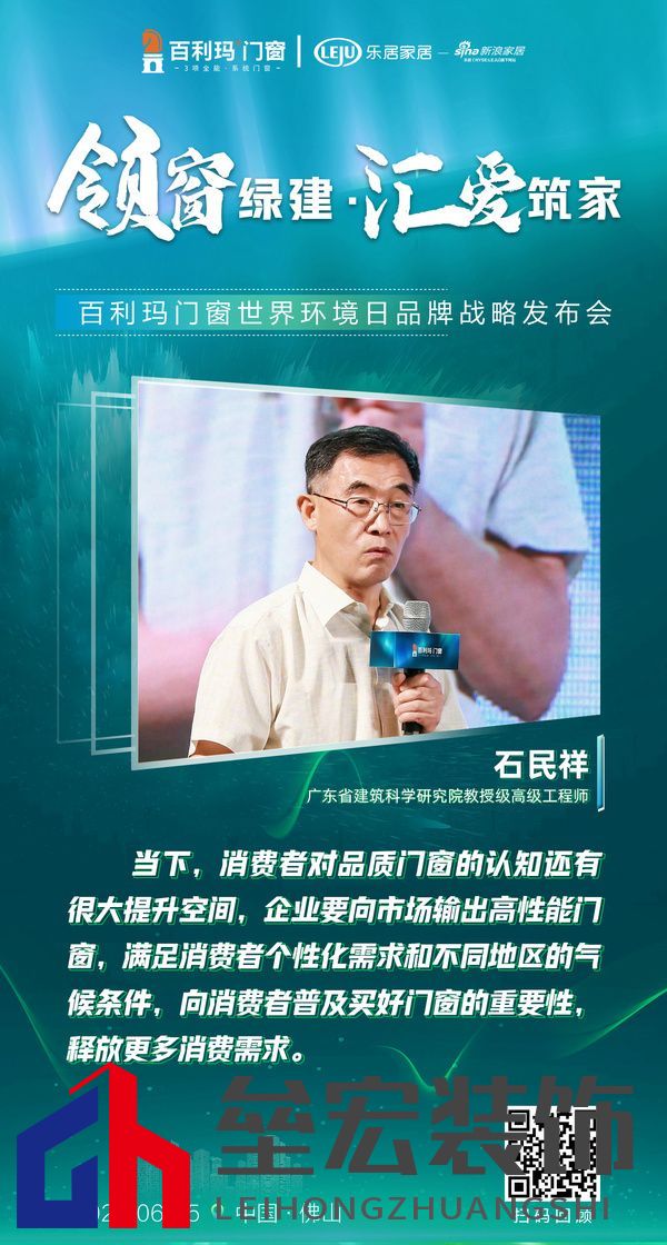 | 新浪門窗頻道訊 6月5日,百利瑪門窗聯(lián)合新浪家居共同舉辦“領(lǐng)窗綠建·匯愛筑家”2022百利瑪門窗世界環(huán)境日品牌戰(zhàn)略發(fā)布會,向消費者傳達最新使命——讓建筑更綠色、更節(jié)能。 在發(fā)布會上,新浪家居門窗行業(yè)總經(jīng)理葉玲菊以《領(lǐng)窗綠建,匯愛筑家》為主題展開論壇,圍繞低碳節(jié)能、綠色環(huán)保門窗展開對話。 廣東省建筑科學研究院教授級高級工程師石民祥:當下,消費者對品質(zhì)門窗的認知還有很大提升空間,企業(yè)要向市場輸出高性能門窗,滿足消費者個性化需求和不同地區(qū)的氣候條件,向消費者普及買好門窗的重要性,釋放更多消費需求。