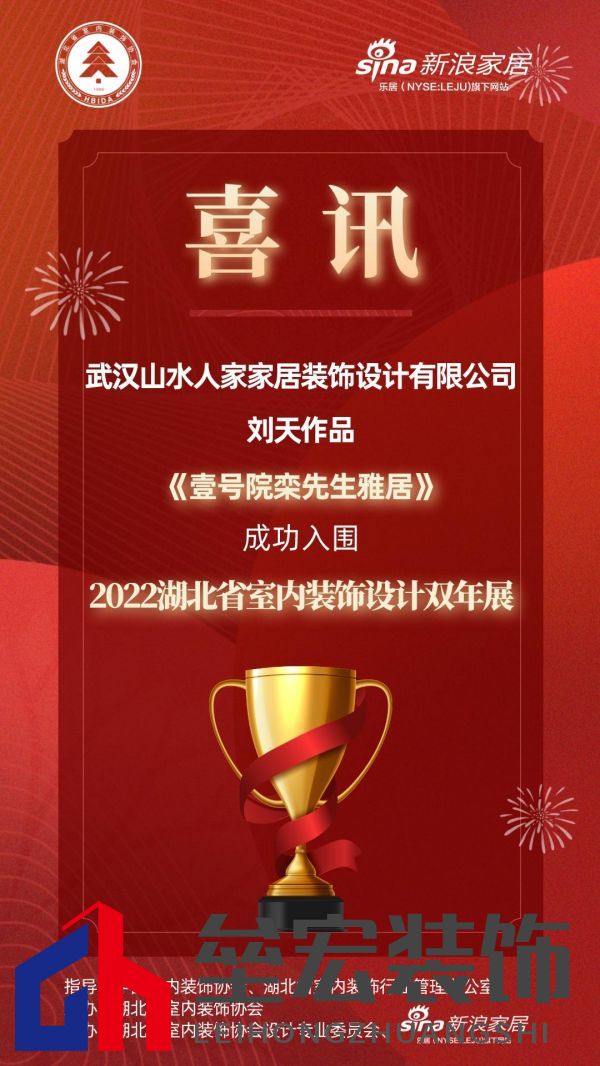 | 綠色設計,大美荊楚,由中國室內裝飾協(xié)會、湖北省室內裝飾行業(yè)管理辦公室的指導,湖北省室內裝飾協(xié)會主辦的2022湖北室內裝飾設計雙年展,在室內裝飾設計行業(yè)打造了一場全省范圍的設計盛會,首輪評選百余套作品,70余套優(yōu)秀作品成功入圍。 在智能化、人文化、健康舒適化的時代趨勢下,雙年展的舉辦,以新時代、新理念、新創(chuàng)意,提升室內裝飾設計水平,為設計師進行品牌賦能,弘揚荊楚設計精神與風貌。針對這項有權威性、有知名度的專業(yè)賽事,武漢各大裝飾公司及設計工作室積極響應,因為參加雙年展對設計師開拓視野、加強行業(yè)交流、提升專業(yè)水平具有重要意義。 雙年展專家組評委秉承公正公平、優(yōu)中選優(yōu)的原則,經過層層篩選,初評結果現(xiàn)已出爐。 設計滋養(yǎng)生活,生活反哺設計,優(yōu)秀的作品,總是離不開對藝術矢志不移的熱情與探索,以及對美與愛的深度感知,雙年展入圍作品均對此進行了完美的詮釋。 武漢山水人家家居裝飾設計有限公司設計師劉天原創(chuàng)作品《壹號院欒先生雅居》,成功入圍2022湖北省室內裝飾設計雙年展,以獨特的設計風格,和優(yōu)秀的設計能力,展示設計理念和創(chuàng)意。