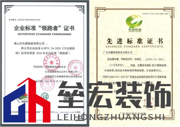 △2020年,東鵬控股作為陶瓷行業(yè)第一批入選企業(yè)標(biāo)準(zhǔn)“領(lǐng)跑者”,2022年東鵬控股獲評為“廣東省先進(jìn)標(biāo)準(zhǔn)”企業(yè) ??在生產(chǎn)管理方面,東鵬制定了一系列的規(guī)范、標(biāo)準(zhǔn),通過不斷加強(qiáng)質(zhì)量控制,以國際標(biāo)準(zhǔn)為檢測依據(jù),進(jìn)行規(guī)范化管理,確保產(chǎn)品質(zhì)量水平穩(wěn)步提高,產(chǎn)品質(zhì)量一直處于同行業(yè)領(lǐng)先水平。在企業(yè)內(nèi)控標(biāo)準(zhǔn)上建立一套遠(yuǎn)嚴(yán)于國家標(biāo)準(zhǔn),形成科學(xué)、先進(jìn)、完善的標(biāo)準(zhǔn)化管理體系。 ??在綠色可持續(xù)領(lǐng)域探索方面,東鵬已榮獲《第一批綠色工廠示范單位》、《中國環(huán)境標(biāo)志產(chǎn)品認(rèn)證證書》、《中國低碳產(chǎn)品認(rèn)證證書》、《2022年綠色建材下鄉(xiāng)推薦品牌》、《III型環(huán)境聲明》、《佛山市綠色建材產(chǎn)品目錄平臺》等數(shù)十項權(quán)威認(rèn)證證書和榮譽(yù)。