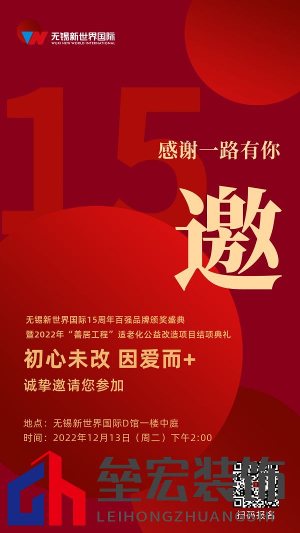 【活動預告】值此年終之際,為表彰和鼓勵先進,提高市場活力!12月13日下午2:00,無錫新世界國際15周年百強品牌頒獎盛典暨2022年“善居工程”&“頤居江溪”適老化公益改造項目結(jié)項典禮將在無錫新世界國際家居建材城二期·精品建材館一樓舉辦,誠摯的邀請您參加~期待您的關(guān)注和蒞臨,新浪家居將持續(xù)報道后續(xù)訪談內(nèi)容及頒獎盛況。 |