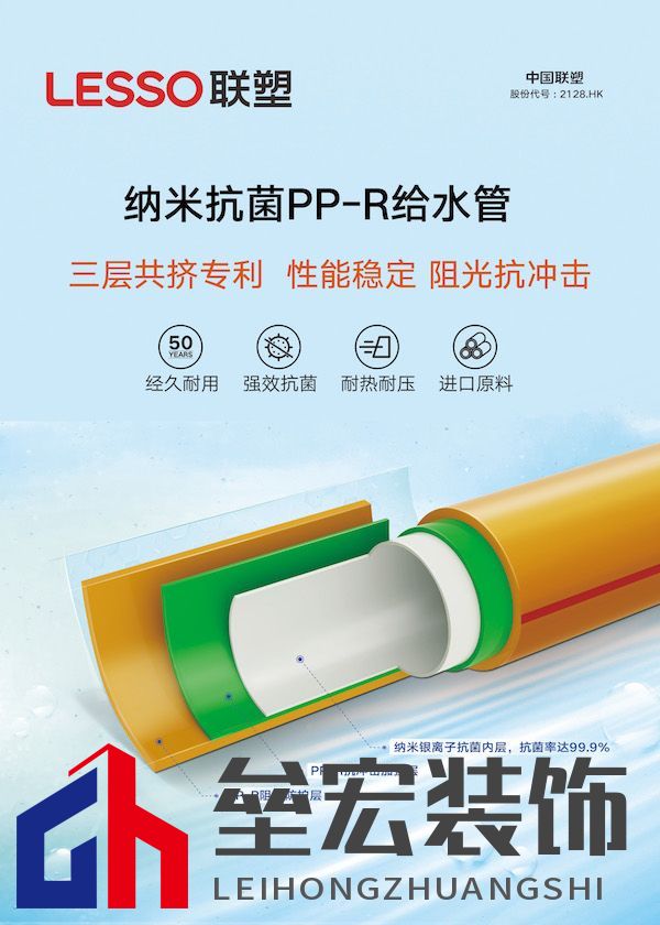 ??供水管道陳舊老化已經(jīng)成為水質(zhì)污染的一大威脅,如果給水管道質(zhì)量不達標、外露、隔光效果不好,容易使水管內(nèi)壁滋生細菌附著于管壁內(nèi),當管道中水流較慢或停流時,經(jīng)過繁殖會形成菌群從而影響水質(zhì),為了從根源上解決問題,我們需要破壞細菌在管壁內(nèi)滋生的環(huán)境,讓細菌無安生之地! ??聯(lián)塑好管家推薦:聯(lián)塑納米系列抗菌管 ??納米抗菌管是在PP-R管基礎上的升級,它不僅具有PP-R管材的所有特性,而且具有顯著的抗菌效果。管材采用高科技抗菌材料納米銀離子,能夠直接深入細菌的細胞核,讓細菌窒息而死,具有高效廣譜抗菌功效,無毒無污染,納米抗菌技術(shù)能夠廣泛抗菌而且效果持久。經(jīng)國家權(quán)威機構(gòu)檢測表明,管材對大腸桿菌、金黃色葡萄球菌及鼠傷寒沙門氏菌抗菌率達90%以上,各種衛(wèi)生指標均達到國家標準,納米抗菌 PP-R管是一種功能性給水管,可直接用于純凈水輸送系統(tǒng),是生活用水的衛(wèi)生防線。