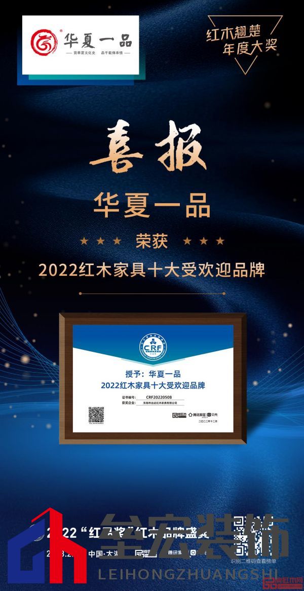 華夏一品榮獲“2022紅木家具十大受歡迎品牌”