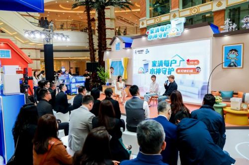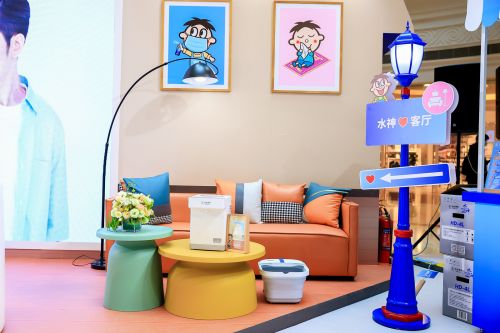 ??蔡旺庭 ??契合發(fā)布會主題,旺旺水神現(xiàn)場模擬家居環(huán)境,以新品水神HD-4L消毒機(jī)為中心,連接客廳、臥室、廚房、餐廳、衛(wèi)浴等日常環(huán)境,用水神替代自來水使用,演示客廳地面清潔、臥室家紡打理、廚房蔬果清洗、衛(wèi)浴系統(tǒng)除味、全屋降甲醛等,全場景展現(xiàn)水神HD-4L消毒機(jī)的家庭應(yīng)用場景。