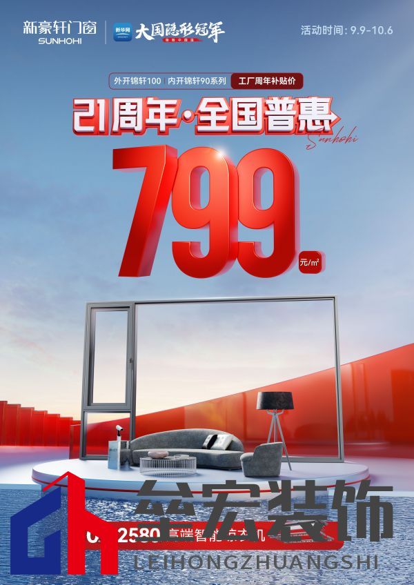 新豪軒21周年慶期間 不僅有799元鉅惠好窗亮相 更有新老客戶專屬福利放送 歡迎前往新豪軒門店咨詢 并鎖定10月6日周年慶直播 下單搶好窗 抽獎(jiǎng)贏大禮