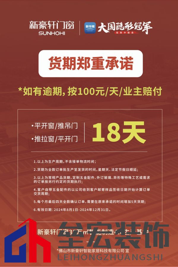 03.智造讓實(shí)惠 質(zhì)效雙保障 品質(zhì)好窗為何只賣799元?低價(jià)產(chǎn)品是否會(huì)有好物?不要擔(dān)心,新豪軒為你揭曉好窗的鉅惠密碼。 不同于“低價(jià)低配”路線,新豪軒開(kāi)啟“智造讓利”模式。新豪軒背靠亞洲航母級(jí)門窗生產(chǎn)基地,采用數(shù)智化軟硬件設(shè)備 + 精益化高效管理模式,從根本上實(shí)現(xiàn)降本增效,形成良性生產(chǎn)循環(huán),從而持續(xù)性地讓利消費(fèi)者。 在降價(jià)不降配同時(shí),新豪軒還用“兩大首發(fā)”消費(fèi)者提供質(zhì)效雙保障:獨(dú)家首發(fā)的《質(zhì)量承諾書》圍繞產(chǎn)品用材、性能參數(shù)、質(zhì)保服務(wù)等消費(fèi)者關(guān)心的問(wèn)題作出明確承諾,讓工藝選材透明化、消費(fèi)保障書面化;行業(yè)首發(fā)的《貨期承諾書》列明系統(tǒng)窗生產(chǎn)周期僅需18天,大大提高了整體交付效率,讓消費(fèi)者更快用上好門窗。
