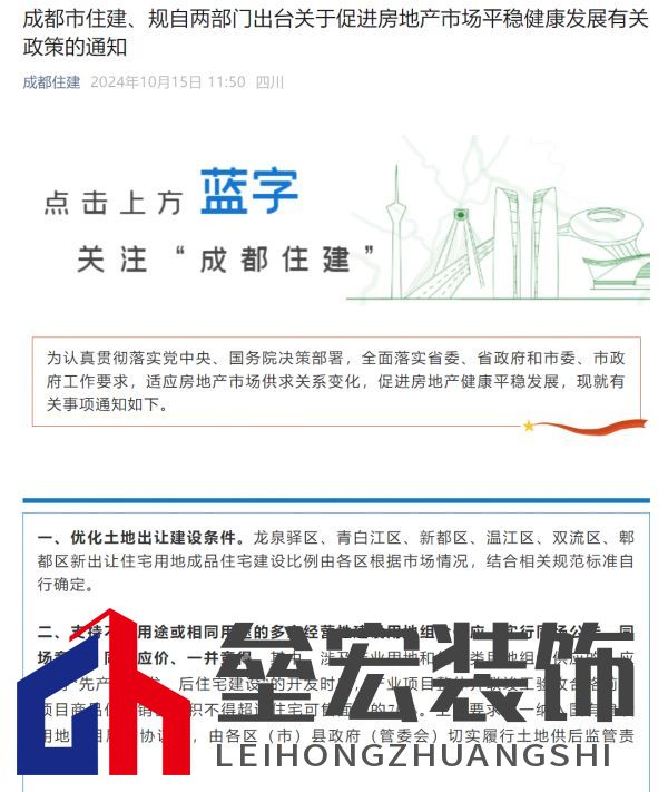 | 10月15日,成都多部門聯(lián)合發(fā)布新政,取消“滿五、滿二”限售規(guī)定,取得《不動(dòng)產(chǎn)權(quán)證書》即可交易;二孩及以上家庭新購住房按首套辦理商業(yè)貸款;公積金貸款額度提高至120萬元,支持購房提取代際互助,取消省內(nèi)異地購房提取限制。此舉旨在促進(jìn)房地產(chǎn)市場平穩(wěn)健康發(fā)展。 成都樓市再迎利好消息。 10月15日上午,成都市住房和城鄉(xiāng)建設(shè)局、成都市規(guī)劃和自然資源局、成都市發(fā)展和改革委員會(huì)、成都市公安局、成都住房公積金中心聯(lián)合召開涉及房地產(chǎn)、落戶等方面的政策溝通會(huì)。隨后,“成都住建”和“成都住房公積金”微信公眾號(hào)先后發(fā)布相關(guān)政策調(diào)整的通知。 其中,成都市住建、規(guī)自兩部門出臺(tái)《關(guān)于促進(jìn)房地產(chǎn)市場平穩(wěn)健康發(fā)展有關(guān)政策的通知》(以下簡稱通知)指出,在成都新購商品住房(除定向銷售項(xiàng)目外)和二手住房的,取得《不動(dòng)產(chǎn)權(quán)證書》后即可上市交易。同時(shí),成都市范圍內(nèi),二孩及以上家庭新購住房辦理商業(yè)貸款時(shí)均認(rèn)定為購買首套住房,支持商業(yè)銀行按照認(rèn)定套數(shù)辦理住房貸款。該政策即日起正式實(shí)施。 成都住房公積金中心印發(fā)通知,對(duì)成都住房公積金貸款和提取政策進(jìn)行了調(diào)整,涉及提高最高貸款額度、支持購房提取代際互助、提取支持由租轉(zhuǎn)購、取消省內(nèi)異地購房提取限制、支持商轉(zhuǎn)公等五項(xiàng)重要支持政策,并自即日起正式實(shí)施。 取消限售,取證即可上市交易 根據(jù)《通知》,成都市范圍內(nèi)新購商品住房(除定向銷售項(xiàng)目外)和二手住房的,取得《不動(dòng)產(chǎn)權(quán)證書》后即可上市交易,在此之前已納入再交易管理范圍的住房仍按原政策執(zhí)行。新購商品住房以網(wǎng)簽備案時(shí)間為準(zhǔn),新購二手住房以不動(dòng)產(chǎn)轉(zhuǎn)移登記登簿時(shí)間為準(zhǔn)。 同時(shí),在成都市范圍內(nèi),二孩及以上家庭新購住房辦理商業(yè)貸款時(shí)均認(rèn)定為購買首套住房,支持商業(yè)銀行按照認(rèn)定套數(shù)辦理住房貸款。 來源:成都住建微信公眾號(hào)  《通知》還對(duì)土地出讓政策進(jìn)行了優(yōu)化。 一是優(yōu)化土地出讓建設(shè)條件。龍泉驛區(qū)、青白江區(qū)、新都區(qū)、溫江區(qū)、雙流區(qū)、郫都區(qū)新出讓住宅用地成品住宅建設(shè)比例由各區(qū)根據(jù)市場情況,結(jié)合相關(guān)規(guī)范標(biāo)準(zhǔn)自行確定。 二是支持不同用途或相同用途的多宗經(jīng)營性建設(shè)用地組合供應(yīng),實(shí)行同場公告、同場競買、同時(shí)應(yīng)價(jià)、一并競得。其中,涉及產(chǎn)業(yè)用地和住宅類用地組合供應(yīng)的,應(yīng)堅(jiān)持“先產(chǎn)業(yè)開發(fā)、后住宅建設(shè)”的開發(fā)時(shí)序,產(chǎn)業(yè)項(xiàng)目整體并聯(lián)竣工驗(yàn)收合格前,項(xiàng)目商品住房銷售面積不得超過住宅可售面積的70%。上述要求統(tǒng)一納入國有建設(shè)用地項(xiàng)目履約協(xié)議書,由各區(qū)(市)縣政府(管委會(huì))切實(shí)履行土地供后監(jiān)管責(zé)任。 三是優(yōu)化商服用地規(guī)劃布局。支持各區(qū)(市)縣結(jié)合片區(qū)功能開展片區(qū)規(guī)劃論證工作,對(duì)涉及商業(yè)服務(wù)業(yè)用地調(diào)整的,應(yīng)結(jié)合現(xiàn)狀和規(guī)劃商業(yè)服務(wù)業(yè)用地進(jìn)行評(píng)估,綜合分析片區(qū)商業(yè)、商務(wù)用地存量規(guī)模及人均規(guī)劃商業(yè)用地指標(biāo)等情況,從市場需求、規(guī)劃布局、宜居宜業(yè)等方面進(jìn)行論證,在落實(shí)總體結(jié)構(gòu)性要求、滿足公服承載力的前提下,優(yōu)化商業(yè)服務(wù)業(yè)用地規(guī)模和布局。 四是成都市范圍內(nèi)新供應(yīng)經(jīng)營性用地,簽訂出讓合同之日起1個(gè)月內(nèi)須繳清全部土地出讓價(jià)款的50%,剩余價(jià)款可按出讓方案要求,在簽訂出讓合同之日起1年以內(nèi)繳清,須按合同約定支付利息。其中,經(jīng)報(bào)自然資源部備案作為低效用地再開發(fā)試點(diǎn)范圍內(nèi)的新供應(yīng)經(jīng)營性用地,剩余價(jià)款可按出讓方案要求,在簽訂出讓合同之日起1年內(nèi)繳清,可不計(jì)收利息。 五是成都市范圍內(nèi)新供應(yīng)經(jīng)營性建設(shè)用地不再收取項(xiàng)目開發(fā)建設(shè)履約保證金。對(duì)已收取的存量開發(fā)建設(shè)履約保證金,各區(qū)(市)縣政府(管委會(huì))應(yīng)結(jié)合宗地履約情況予以部分退還、全部退還或允許企業(yè)以銀行保函替換。同時(shí),各區(qū)(市)縣政府(管委會(huì))應(yīng)建立企業(yè)項(xiàng)目履約踐諾及信用分級(jí)分類監(jiān)管機(jī)制,將相關(guān)違規(guī)違約行為納入信用檔案管理。 公積金最高貸款額度提至120萬元 本次成都住房公積金政策調(diào)整涉及提高最高貸款額度、商轉(zhuǎn)公等五項(xiàng)重要支持政策。 提高最高貸款額度方面,本次政策調(diào)整全面提高了單、雙繳存人最高貸款額度,其中單繳存人60萬元,雙繳存人100萬元,同時(shí)取消了原雙繳存人首套二套住房的額度差異,統(tǒng)