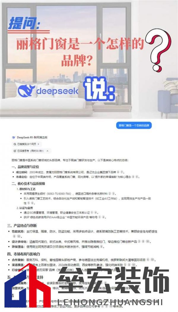 | ??2025年的家居潮流中,誰是最耀眼的明星?答案非麗格門窗與DeepSeek莫屬!一邊是以卓越品質(zhì)引領(lǐng)家居風(fēng)尚的麗格門窗,另一邊則是在AI領(lǐng)域掀起革命性浪潮的DeepSeek。兩者雖領(lǐng)域不同,但都以其獨(dú)特的創(chuàng)新力和精湛的工藝,贏得了全球的矚目,共同展現(xiàn)了“中國創(chuàng)造”的無限可能。