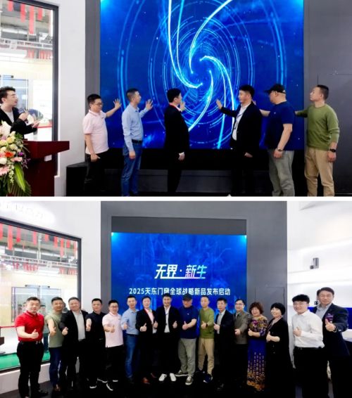 ??最后,發(fā)布會迎來高潮環(huán)節(jié),袁志董事長攜手許順友、劉廣貴、張永志、王東旭、國肖龍五位嘉賓,共同按下“無界·新生光影啟動裝置”。隨著大屏呈現(xiàn)“邊界消融”的動態(tài)效果,主持人宣布:“2025天東門窗全球戰(zhàn)略新品正式啟航!”現(xiàn)場掌聲雷動,象征行業(yè)傳統(tǒng)壁壘被打破,開放共生的新生態(tài)正式開啟。