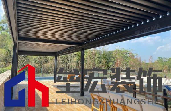 ??電動(dòng)翻轉(zhuǎn)百葉篷:極簡(jiǎn)的線條與啞光質(zhì)感,完美融入建筑風(fēng)格,展現(xiàn)出低調(diào)奢華的美學(xué)理念。其葉片可精準(zhǔn)調(diào)節(jié)角度,既能過濾烈日下的強(qiáng)光,又能遮擋微雨天的細(xì)雨,為賓客提供舒適的戶外體驗(yàn)。這種設(shè)計(jì)不僅滿足了遮陽(yáng)功能需求,更成為空間美學(xué)的延伸,讓戶外空間在不同天氣條件下都能保持其獨(dú)特魅力。 ??垂直篷:如同輕盈的紗幕,沿休閑區(qū)邊界垂落,有效阻隔側(cè)面強(qiáng)光與視線干擾,同時(shí)保持通透的視野。這種設(shè)計(jì)巧妙地平衡了私密性與開放性,讓賓客在享受自然美景的同時(shí),也能擁有專屬的寧?kù)o空間。