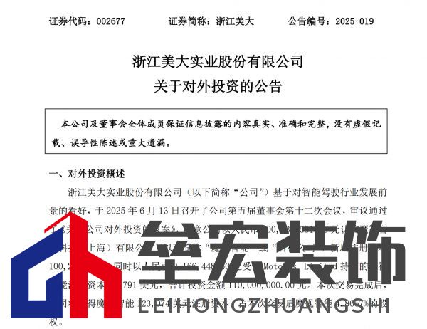 ??日前,“集成灶第一股”浙江美大發(fā)布公告,擬跨界投資智能駕駛領(lǐng)域。 ??公告顯示,基于對智能駕駛行業(yè)前景的看好,浙江美大于6月13日召開董事會會議,同意以1.01億元認(rèn)購魔視智能科技(上海)有限公司(下稱“魔視智能”)新增注冊資本10.03萬美元。 ??同時(shí),公司以916.64萬元受讓Motovis Limited持有的魔視智能注冊資本2.28萬美元,合計(jì)投資金額1.1億元人民幣。交易完成后,浙江美大將持有魔視智能12.31萬美元注冊資本,占其增資后總股本的4.8657%。