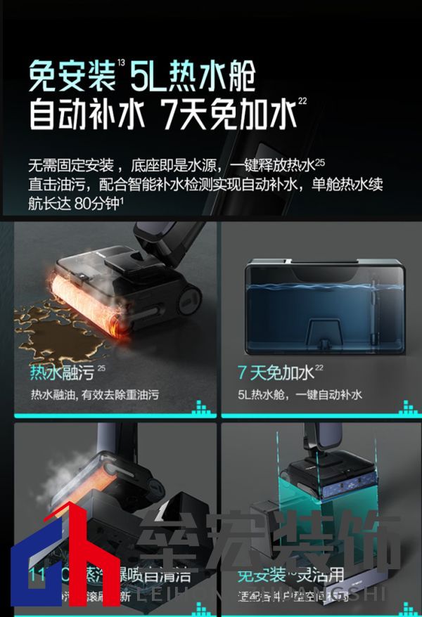 ??面對廚房地面風干的醬油漬、凝固的油污,芙萬科學家系列搭載了一鍵增壓爆噴科技。通過高壓水流以15°的黃金銳角精準噴射,能在10秒內(nèi)迅速瓦解頑固污漬。地面清潔過后,將洗地機放至底座,5L大容量熱水艙,無需安裝,一鍵即可釋放117℃的高溫熱水,強力蒸汽爆噴自清潔溶解重油污,讓最棘手的廚房清潔難題迎刃而解。